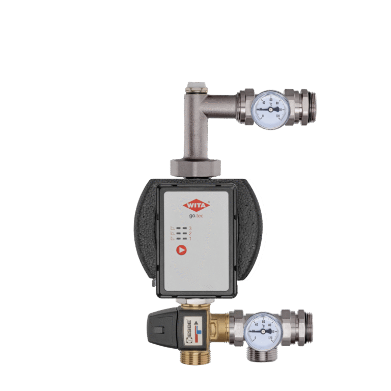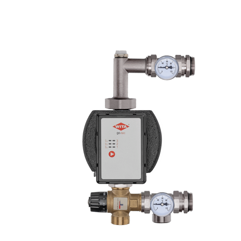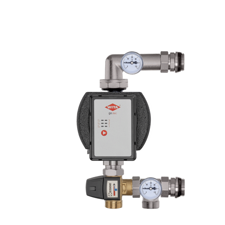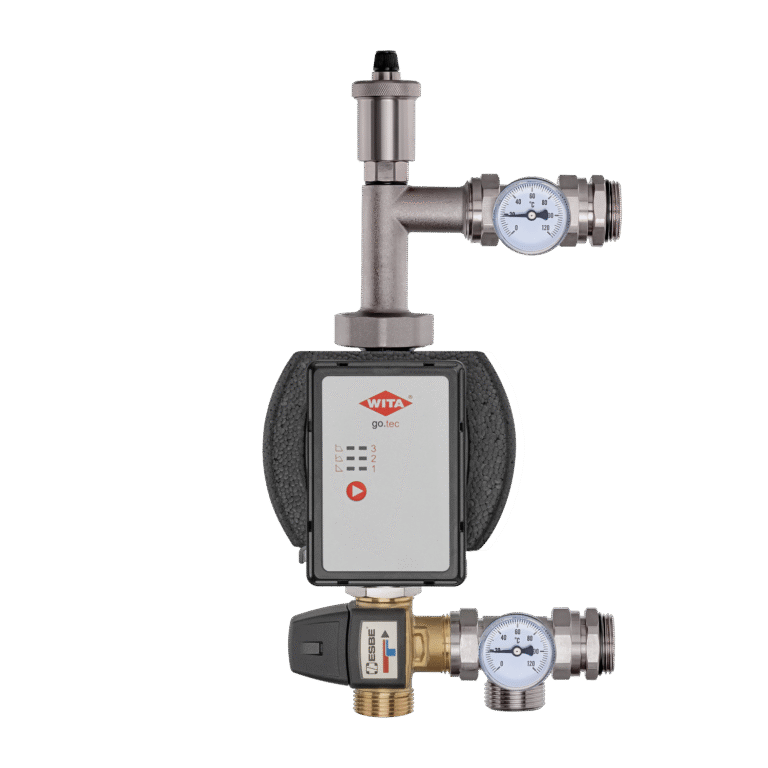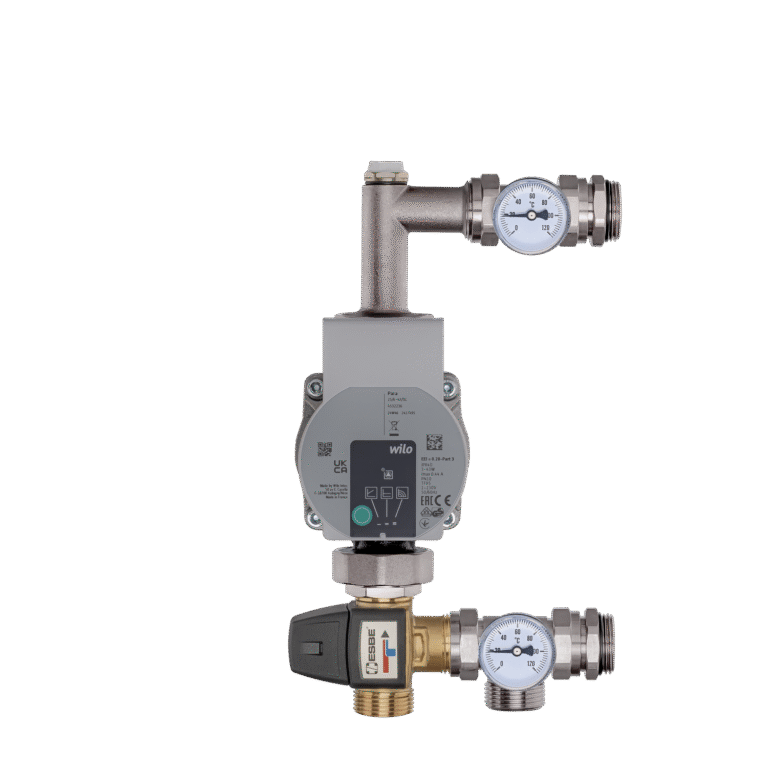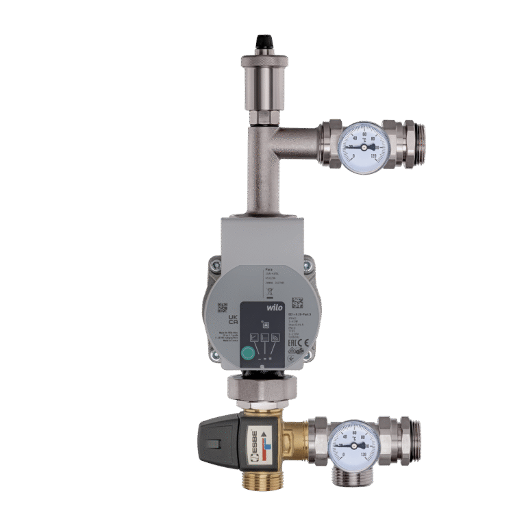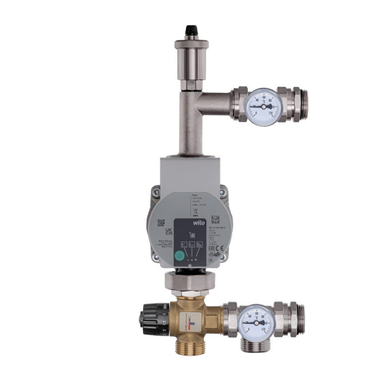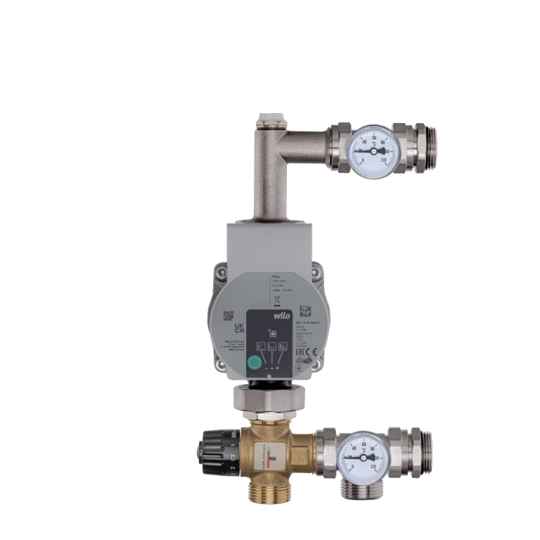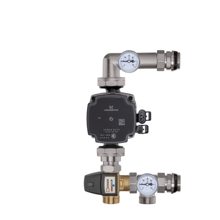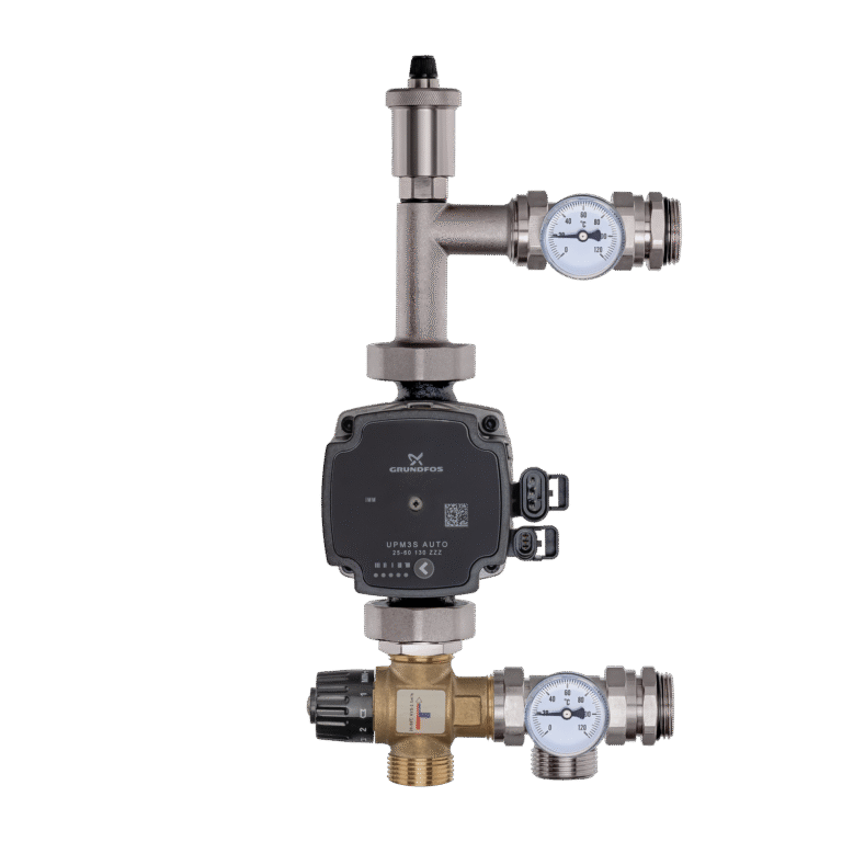 Misiņa sajaukšanas komplekti (sajaukšanas grupas) sastāv no cirkulācijas sūkņa, trīsceļu vārsta (bimetāla), termometriem un ventilācijas vārsta.